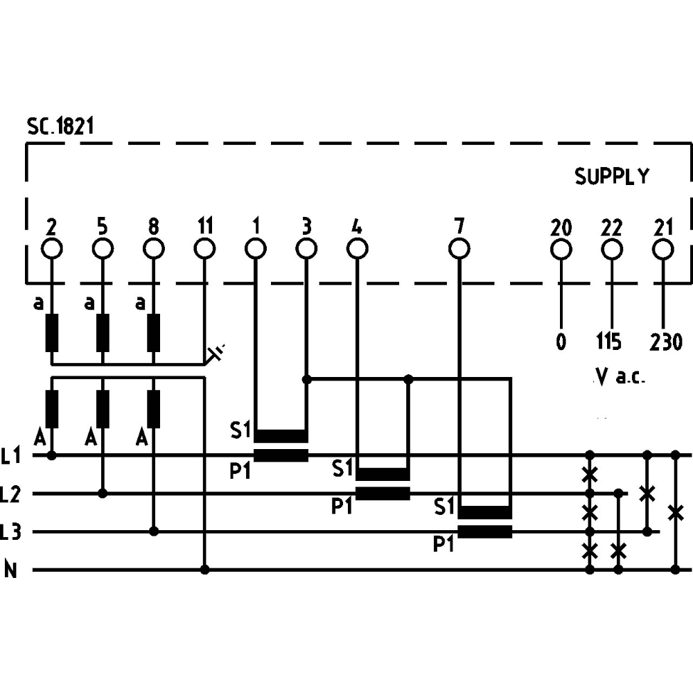 Multifunctional network analyser suitable for use in three-phase systems with three or four wires with unbalanced load for L.V., even in the presence of distorted waveforms. It allows the display of all the main characteristic quantities of an electrical network (11 quantities, 30 measurements) on a single instrument, by means of 3 RED LED displays, on which the values relating to the three phases appear, plus a fourth YELLOW LED display for displaying the system quantities.