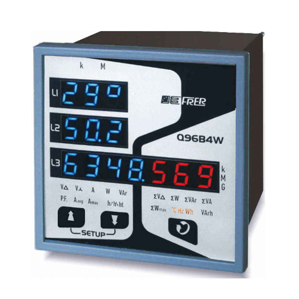 Q96B4W→96x96mm High Performance Multifunction meter with 4 blue/red displays
