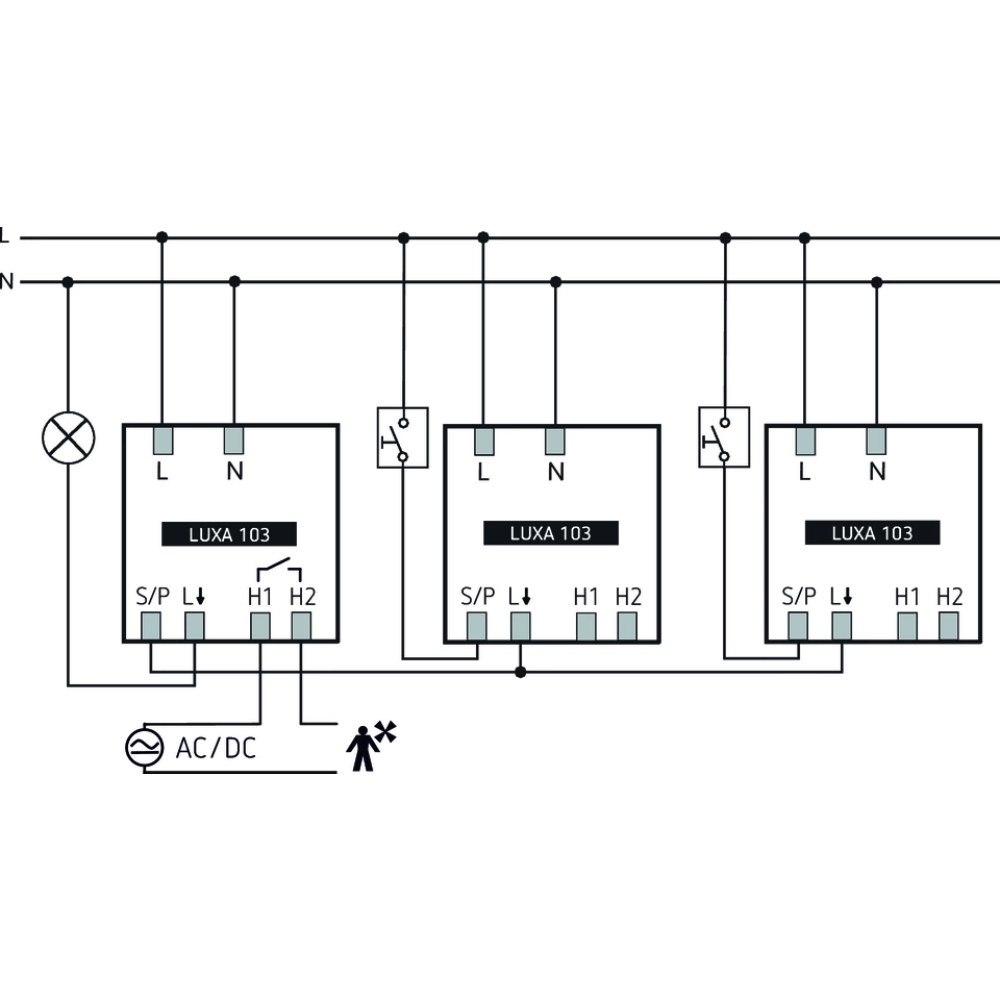 1 channel light (relay 230 V) and 1 channel presence (relay potential-free for HVAC control)