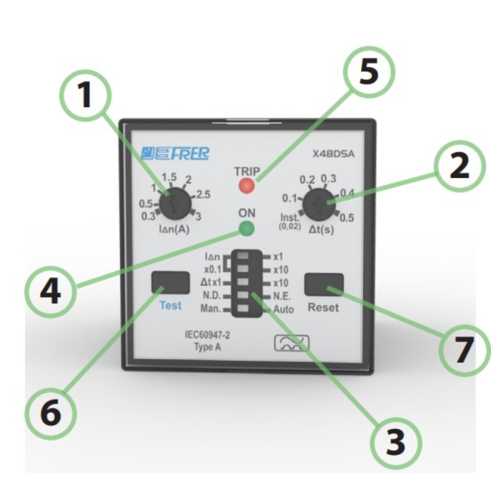 Type A earth leakage relay - 48x48 mm