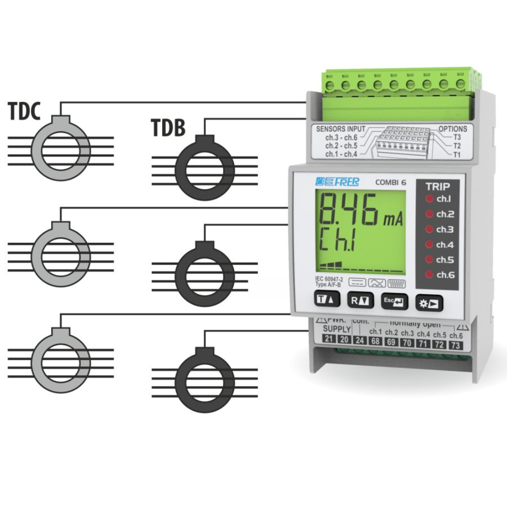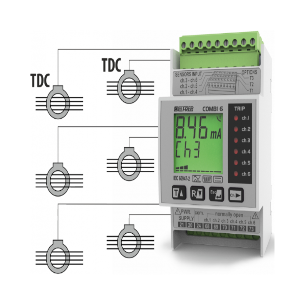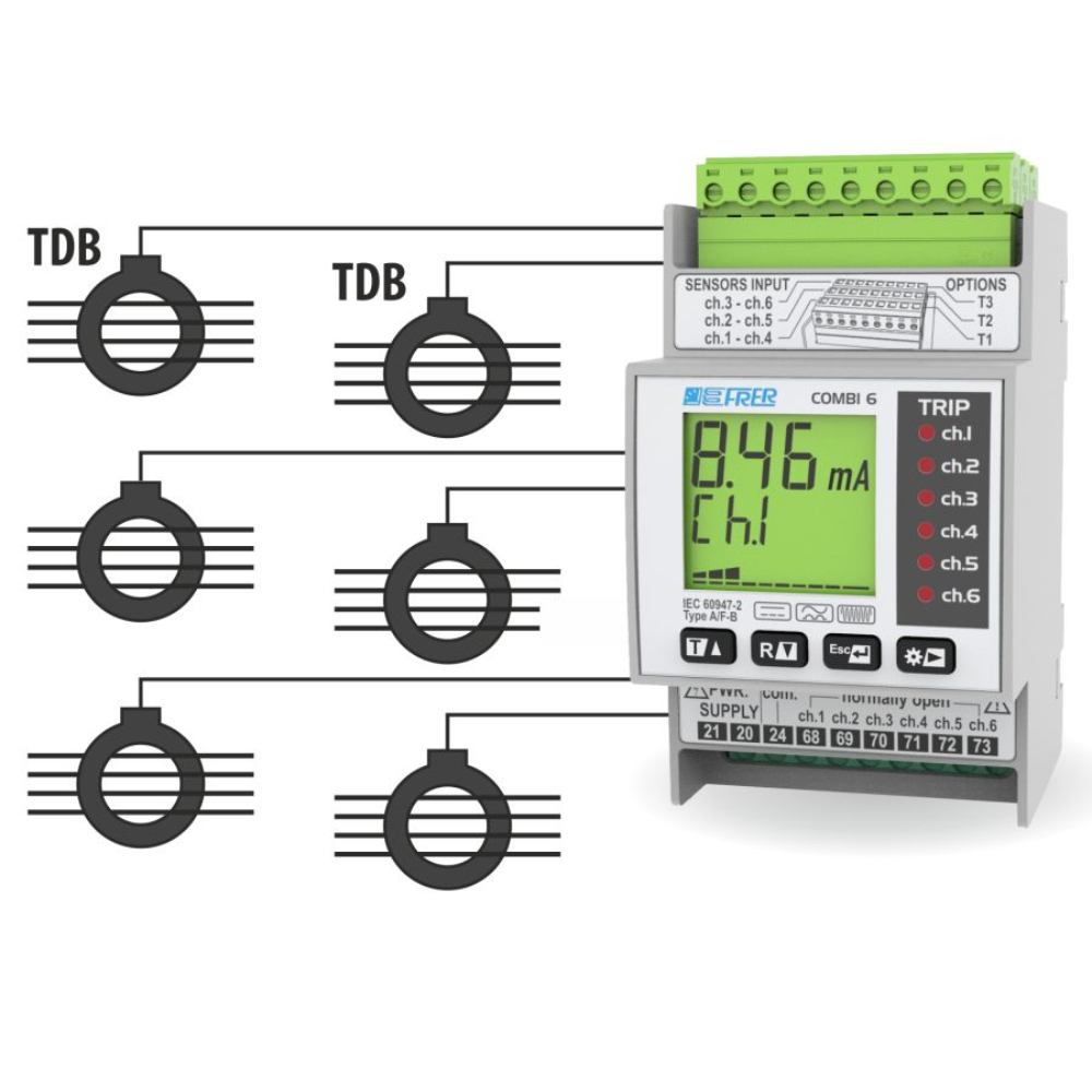 رله نشت جریان زمین ریلی 6 کاناله مناسب سیستم های AC و DC با قابلیت کنترل 6 فیدر مجزا از کوربالانس های تایپ A-A&F-B با قابلیت تنظیم جریانی قابلیت تنظیم زمانی 0.02-30 ثانبه تغذیه 20-60 ولت AC/DC و مولتی ولتاژ 80-260 ولت AC/DC دارای خروجی تریپ چنج اور قابلیت نمایش میزان جریان نشتی و تغییر رنگ صفحه بر اساس مد کاری قابلیت اتصال به شبکه های صنعتی Modbus RS 485 و TCS |