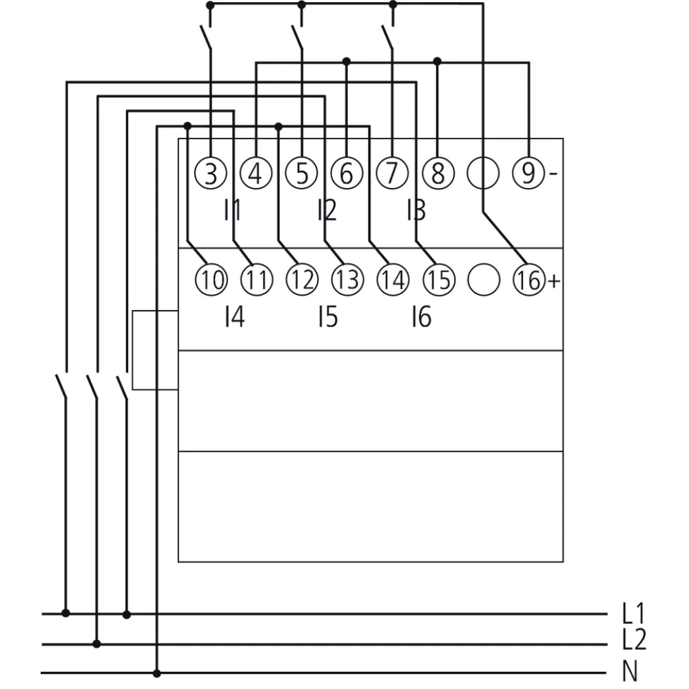 6 floating universal and wide-range voltage inputs (10-240 V AC/DC or internally generated auxiliary voltage of approx. 12 V DC)