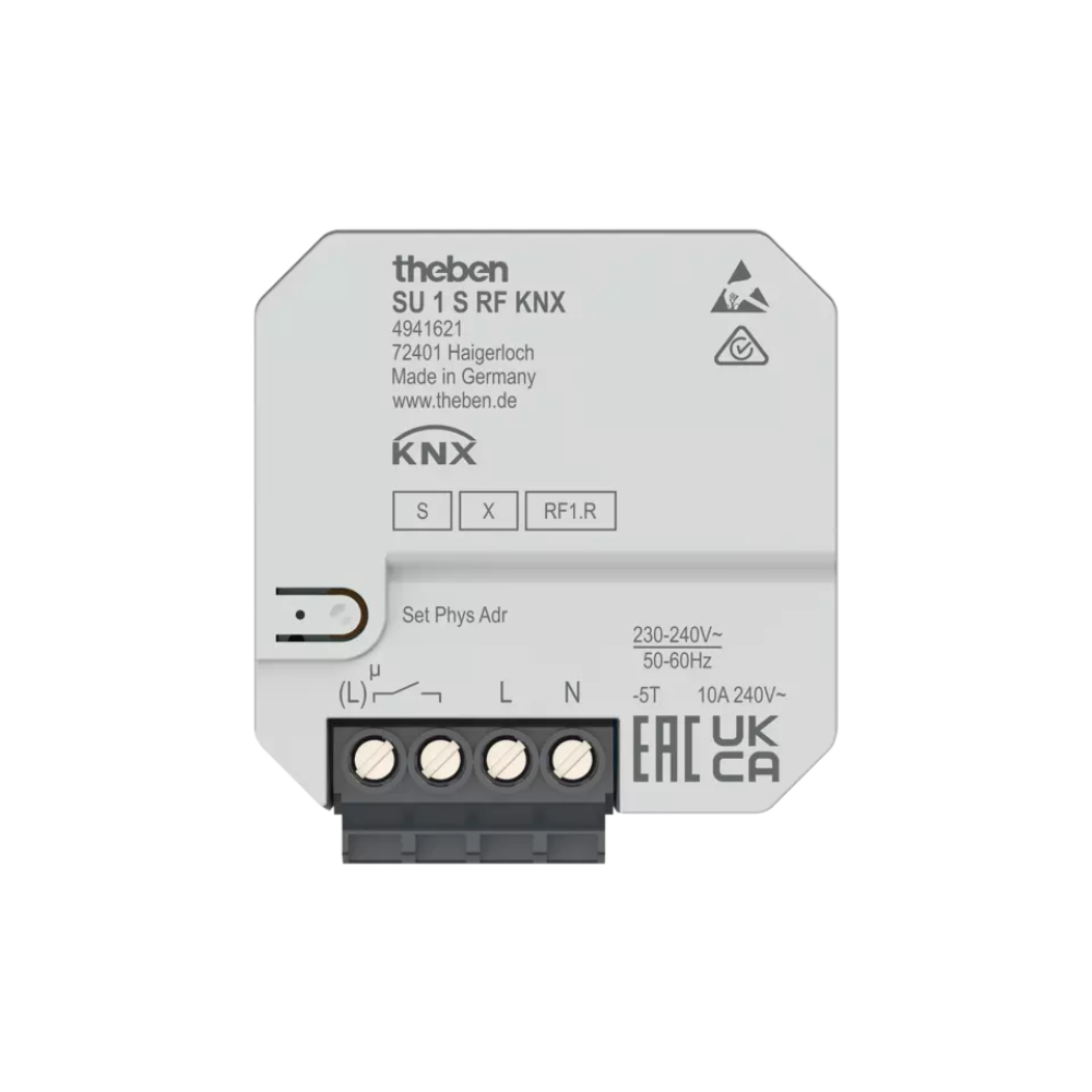 Flush-mounted 1-way switching actuator 10 A 130 μF, KNX RF, Data Secure