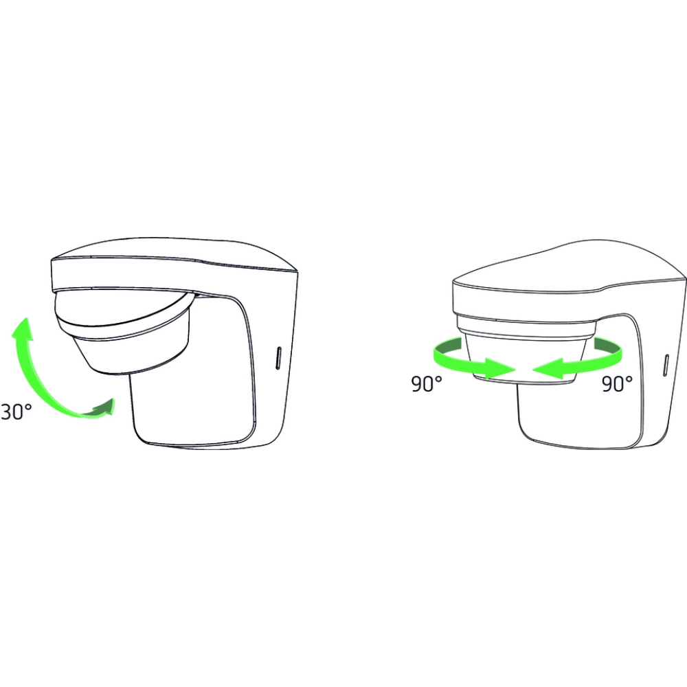 Sensor head can be turned by ± 90° horizontally and by 30° downwards