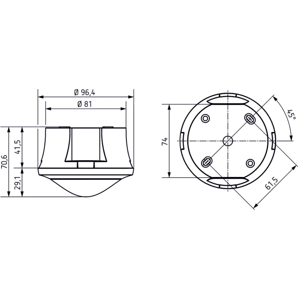 Passive infra-red motion detector for ceiling installation surface-mounted